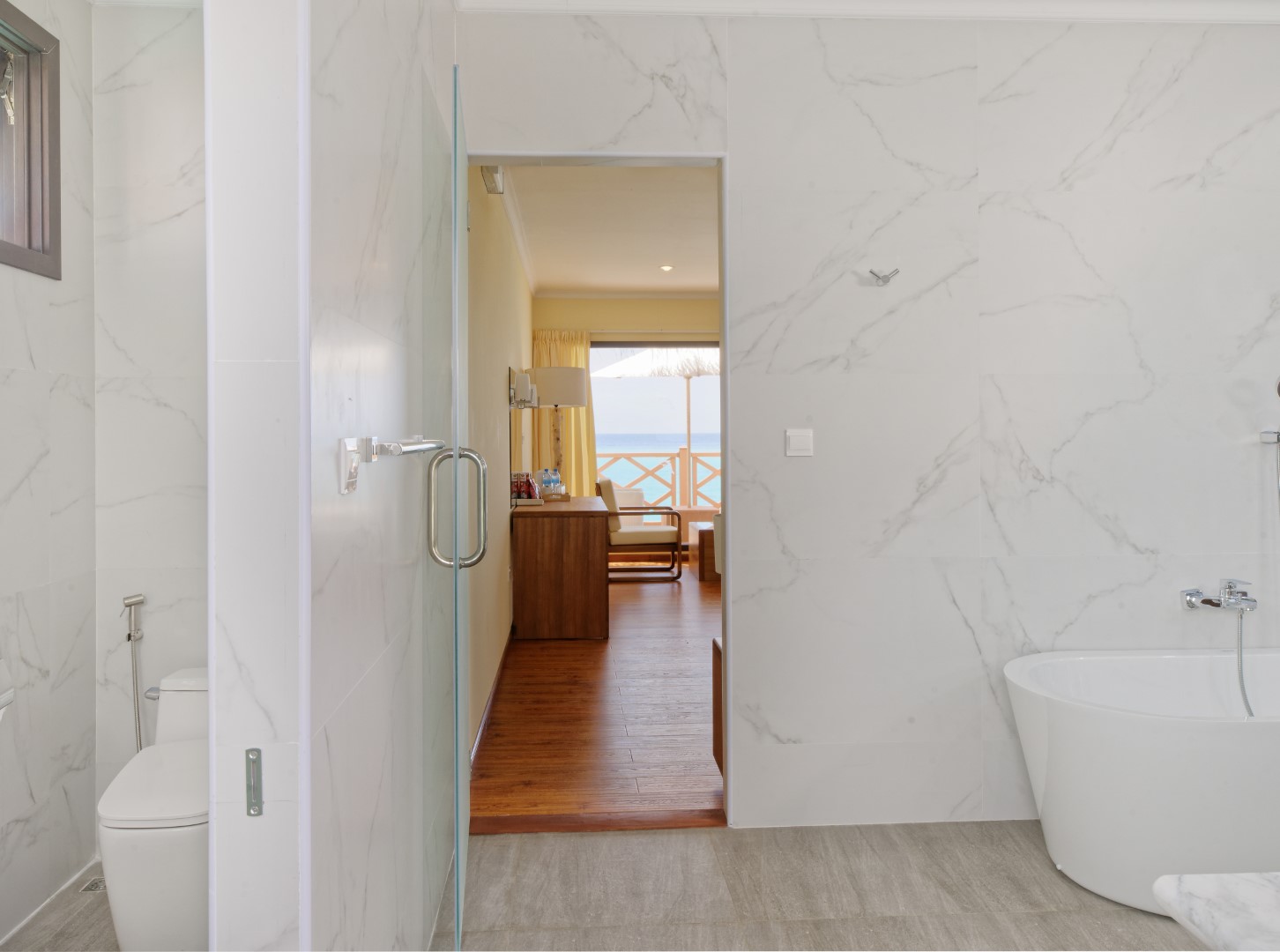 I Superior Beach Bungalow in strutture monofamiliari ampie 45 mq, sono dislocati lungo la spiaggia con accesso diretto al mare e dotati di veranda/deck in legno con sedute e dondolo tipico maldiviano. Il bagno è dotato di doppio lavabo, doccia separata e vasca da bagno.