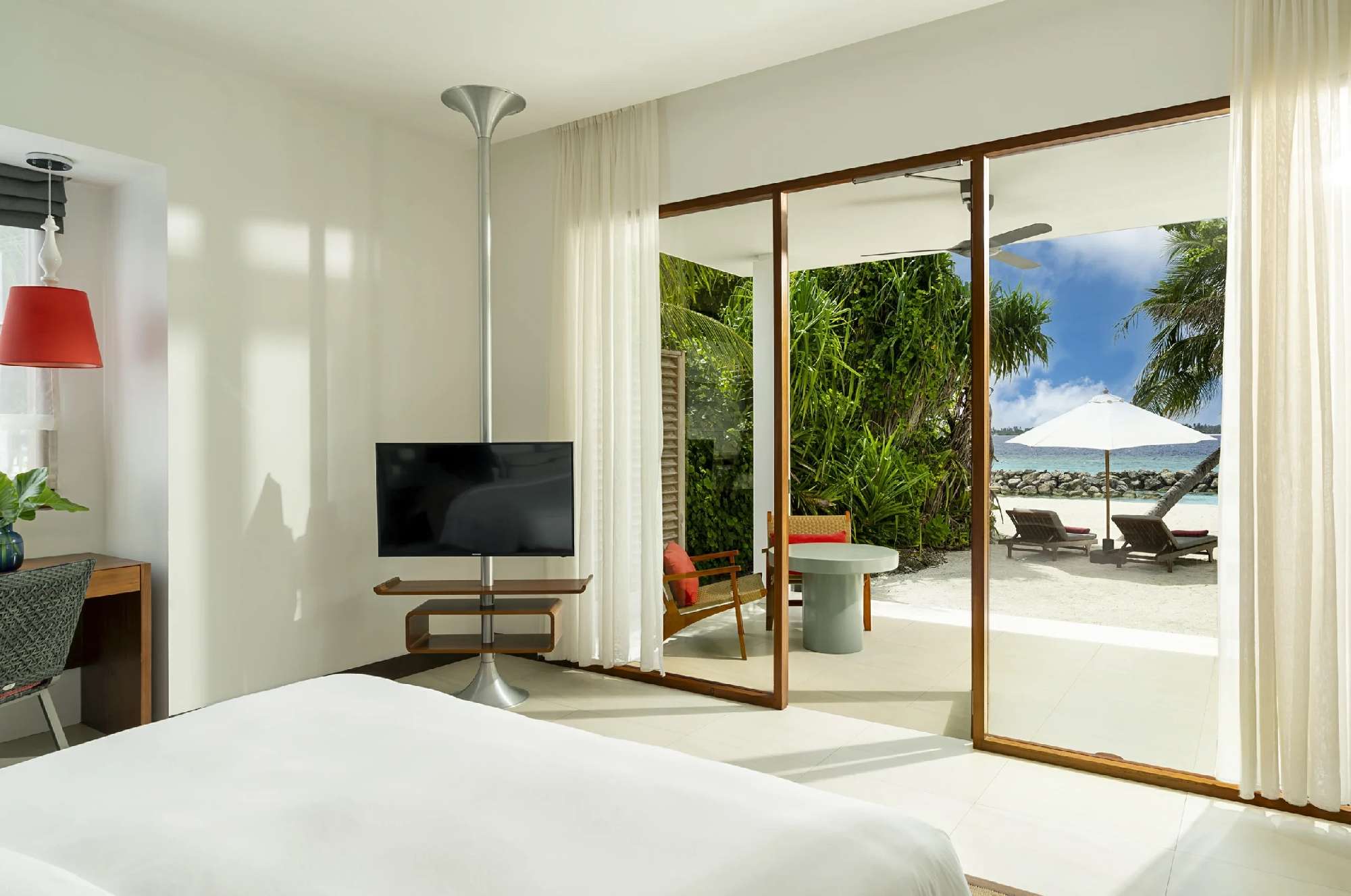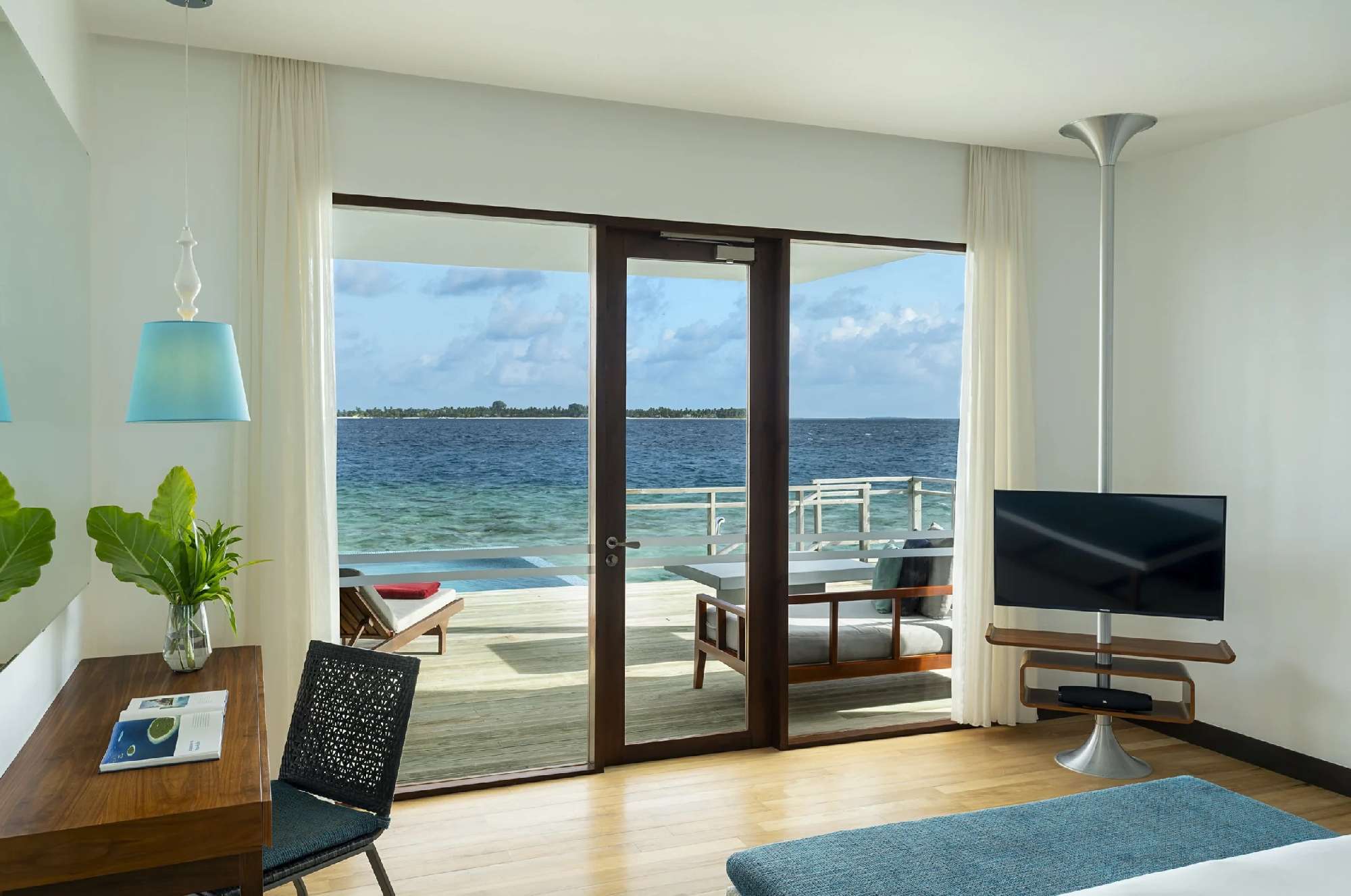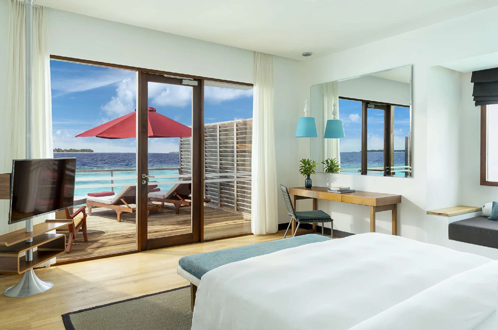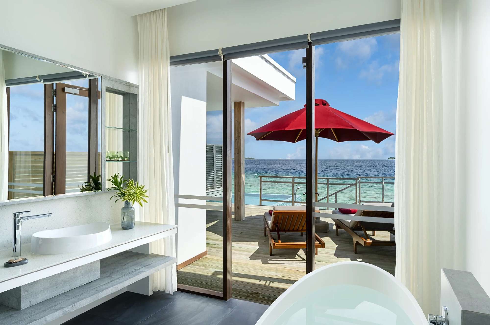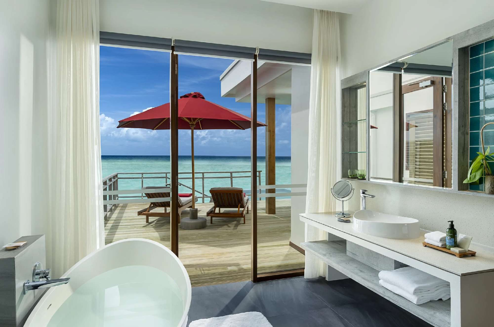 Two Bedroom Deluxe Beach Bungalow, Two Bedroom Beach Villa e Two Bedroom Dhigali Suite – soluzioni spaziose per famiglie o gruppi, con living separati, ampi deck e piscine private nelle suite di categoria superiore.