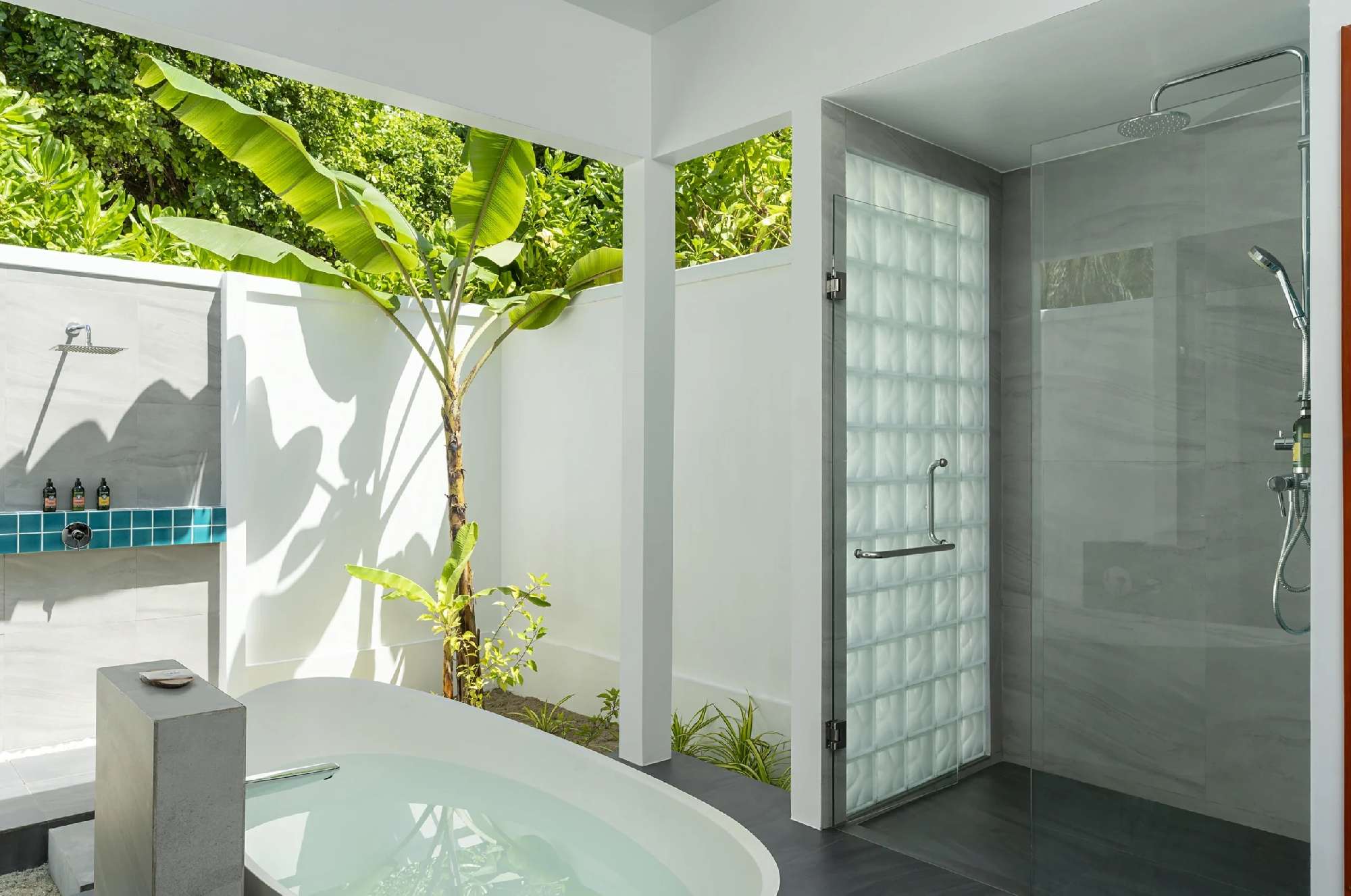 Beach Bungalows – circa 70 mq, con veranda privata e bagno open-air, immerse nei giardini tropicali.