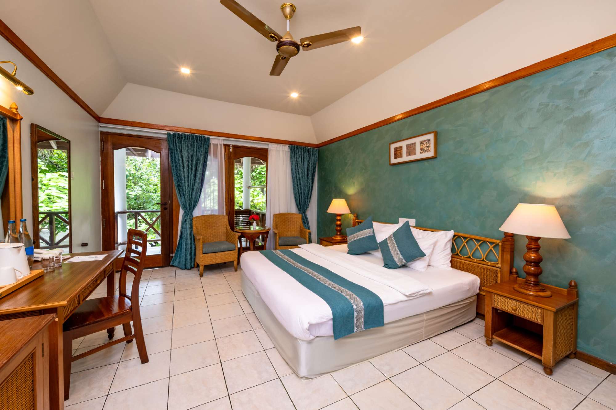 Le 38 Premium Room (27 mq) sono distribuite sia su bungalow a piano terra che su strutture a 2 piani. Recentemente ristrutturate e posizionate sul lato est dell’isola, sono le camere più confortevoli e ricercate. Hannoin dotazione la TV con canali satellitari. Possono ospitare 3 adulti o 2 adulti + 2 bambini.