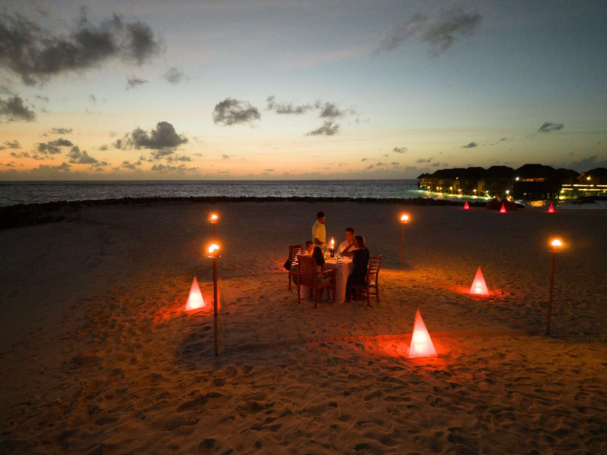 Le 12 Water Villas (37 mq) sono di più ampia metratura e realizzate su palafitte sul lato tramonto. Hanno un ampio terrazzo con doccia e lettini e bollitore per tè e caffè. Possono ospitare 3 adulti o 2 adulti + 1 bambino.