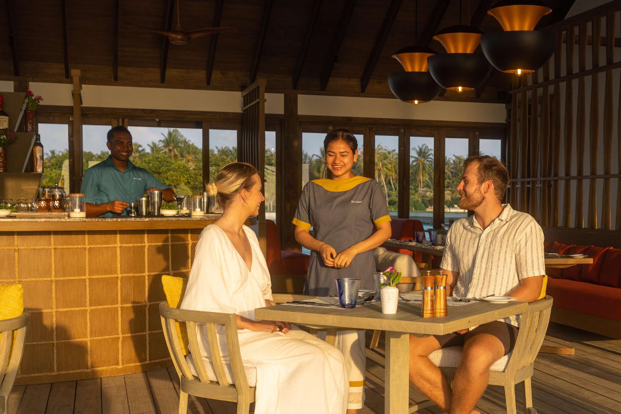 Jawakara Islands Maldives offre un’esperienza gastronomica varia, con più ristoranti e bar distribuiti sulle due isole.