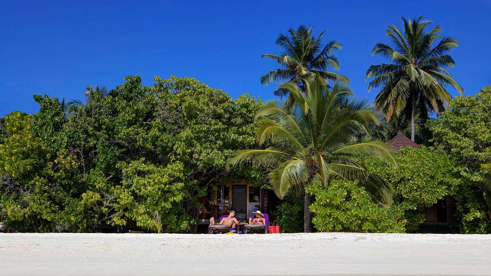 Il resort dispone di 65 ville, suddivise tra spiaggia e laguna, arredate in stile tropicale con materiali naturali e colori caldi.