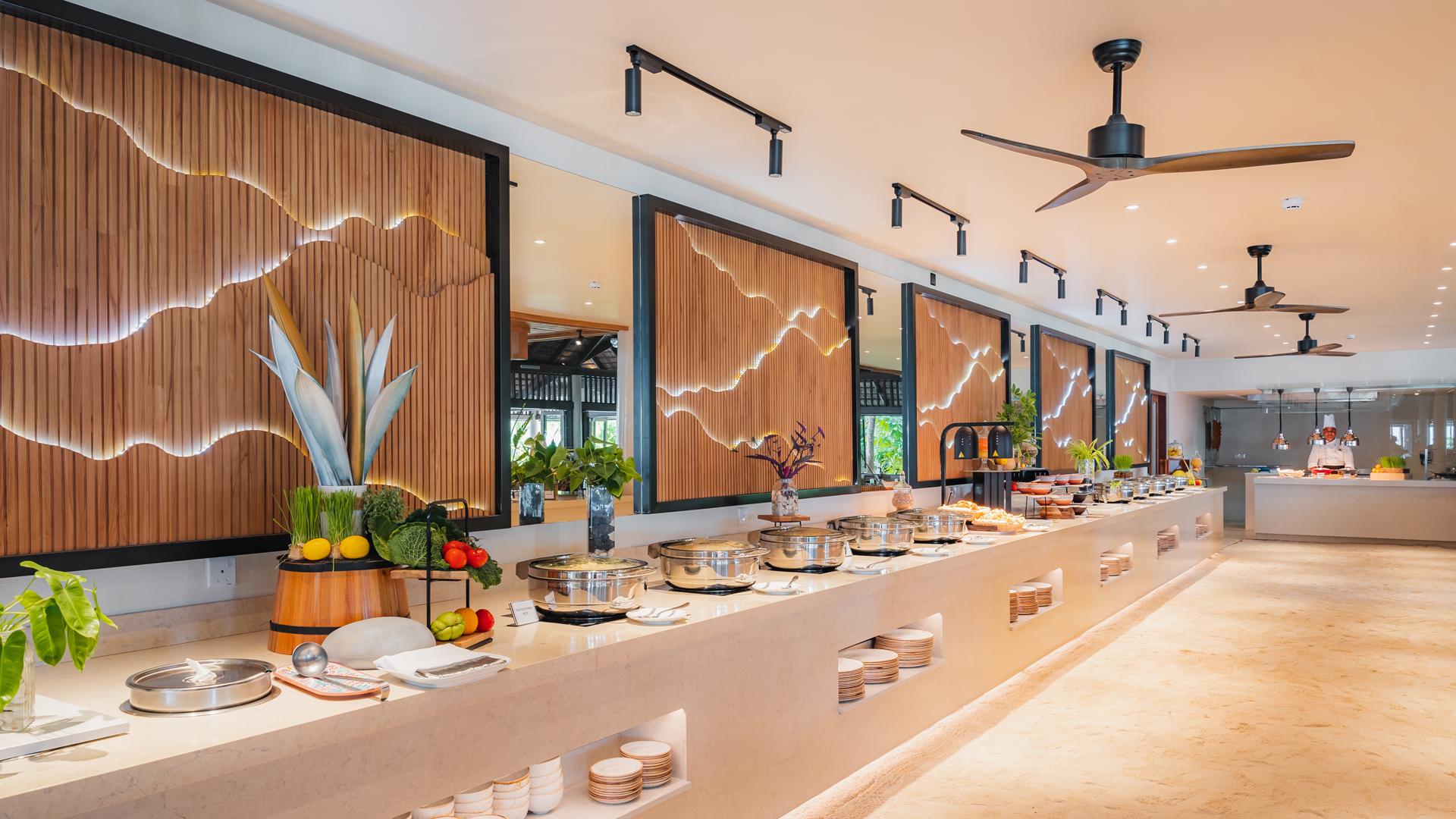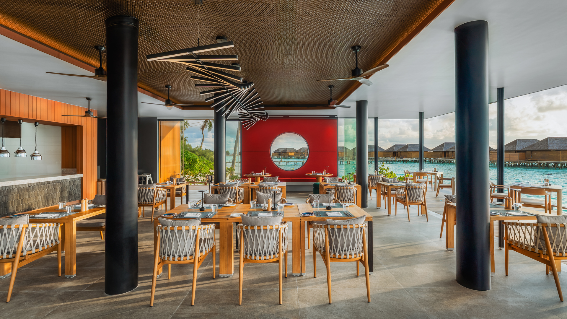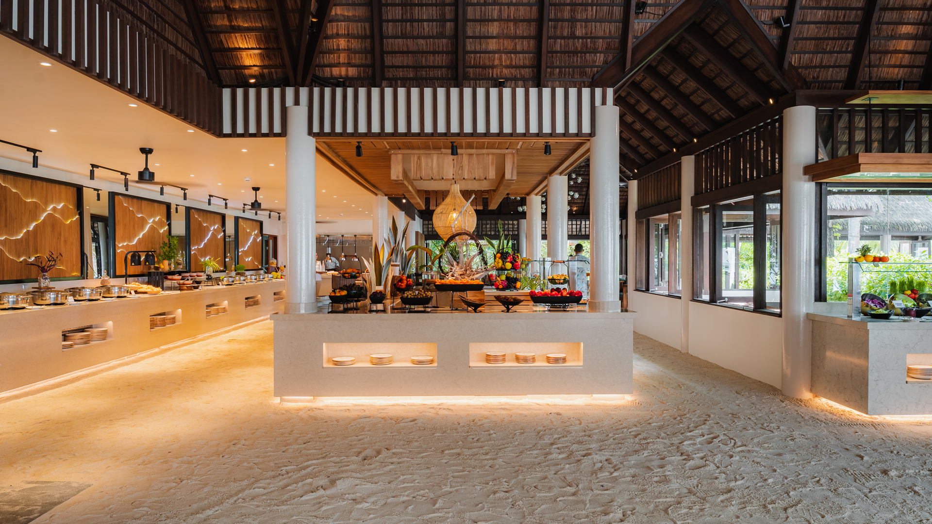 Dhonnveli Restaurant – ristorante principale con servizio a buffet per colazione, pranzo e cena, con cucina internazionale e serate a tema