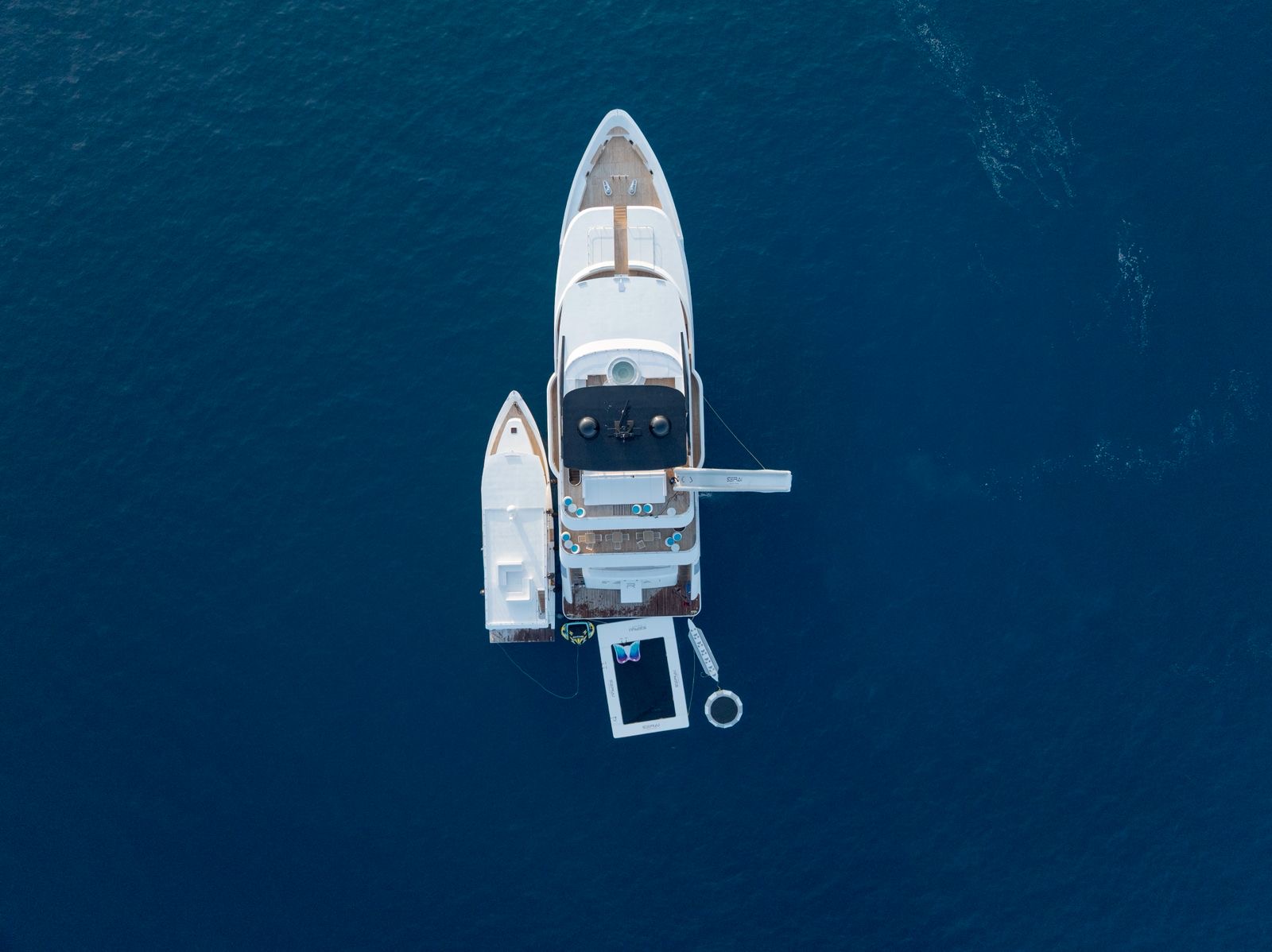 La barca dispone inoltre di una dive boat dedicata e di attrezzature specifiche per le attività subacquee e acquatiche. Questo consente di separare in modo efficiente la parte tecnica della crociera dalla vita rilassata sullo yacht, rendendo più comoda la gestione delle immersioni e garantendo agli ospiti maggiore libertà durante tutta la settimana.